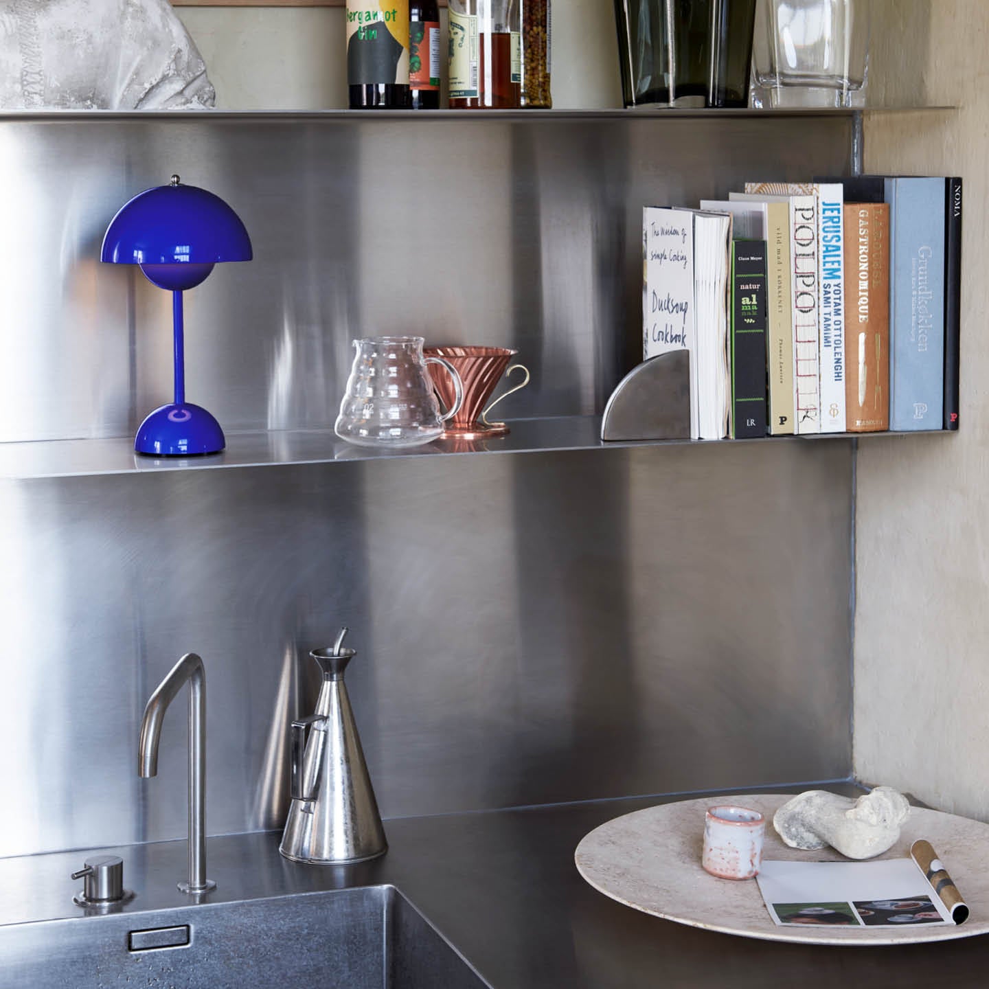 Inspired by the iconic Verner Panton designed Flowerpot table lamp, the petite proportions of the Flowerpot VP9 Portable Table Lamp has the added advantage of being mobile. The deliberately lightweight design and cordless feature allow the lamp to be easily moved from table to counter as needed.