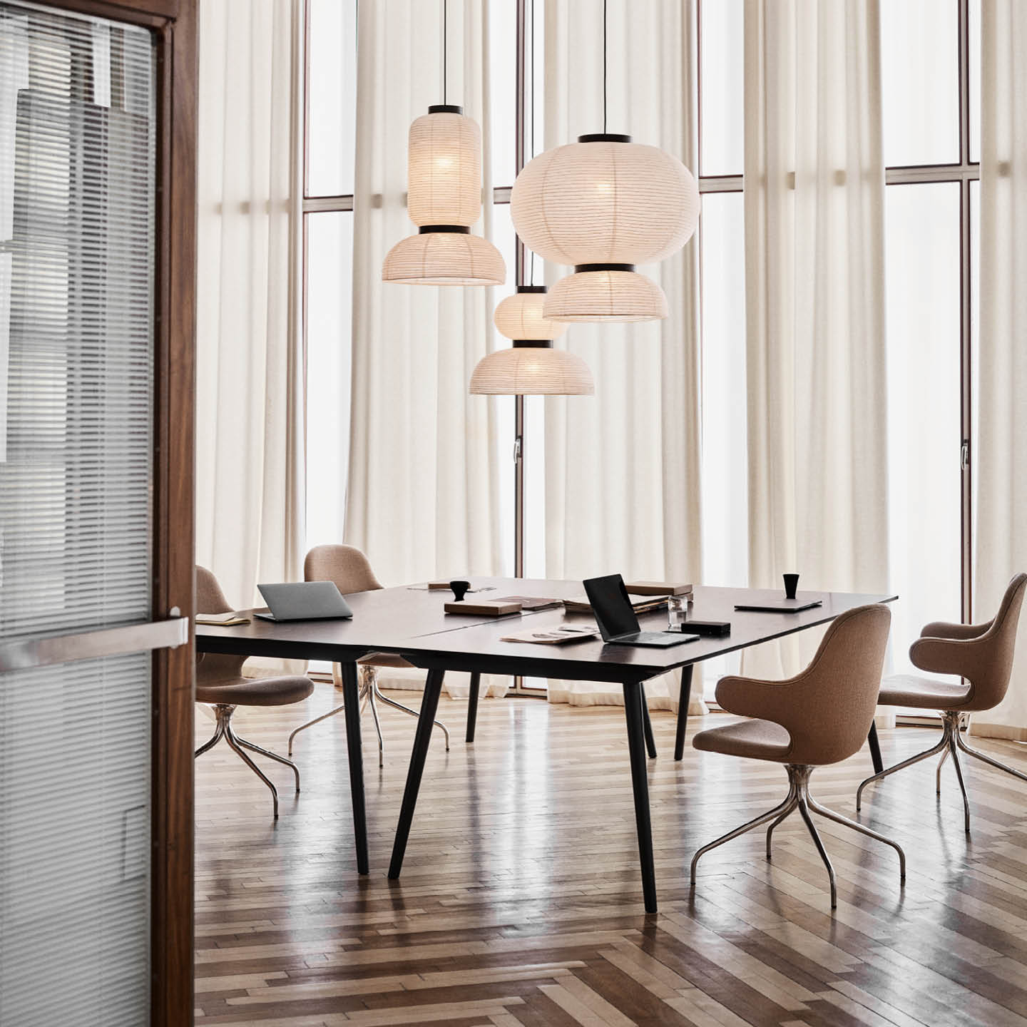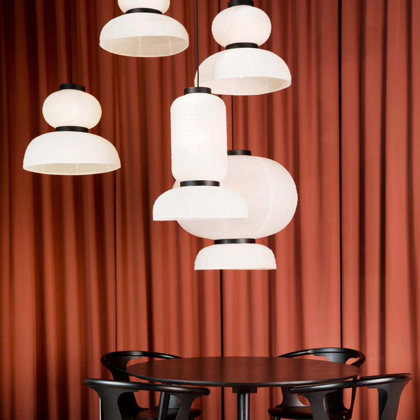 An ode to Asian design through the lens of Scandinavian minimalism, the beauty of the Formakami JH3 Pendant lies in its material delicacy. Designed by Jaime Hayon and handcrafted with paper, the airy, bulbous shape is accentuated by the grounding presence of black stained oak – a striking visual composition reflected throughout the series.