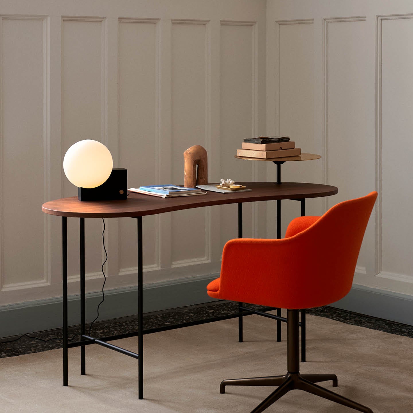 Signe Hytte’s Journey is a masterful merging of two classic geometric shapes: the sphere and the rectangle. The opal glass shade, reminiscent of the moon, is elegantly balanced by the rectangular base, creating a singular, timeless form.