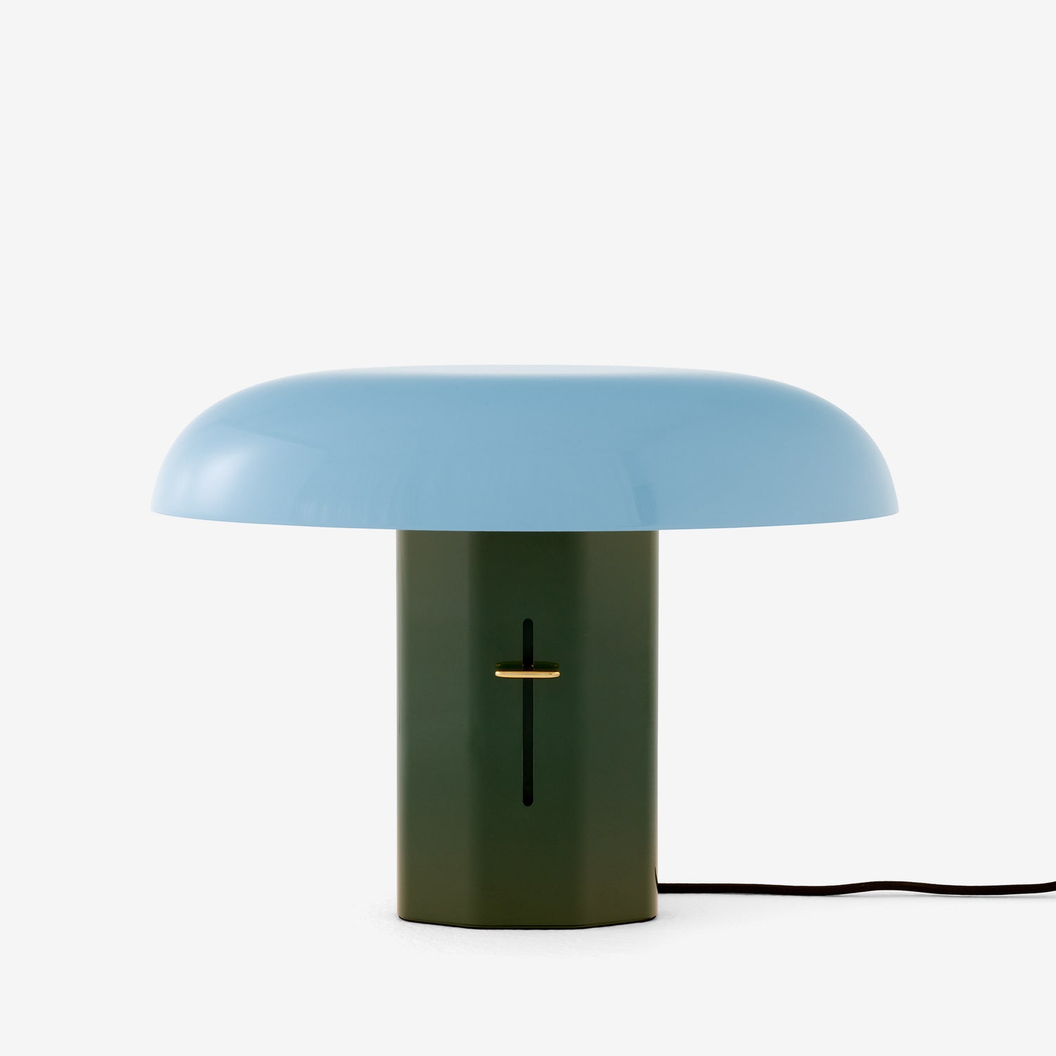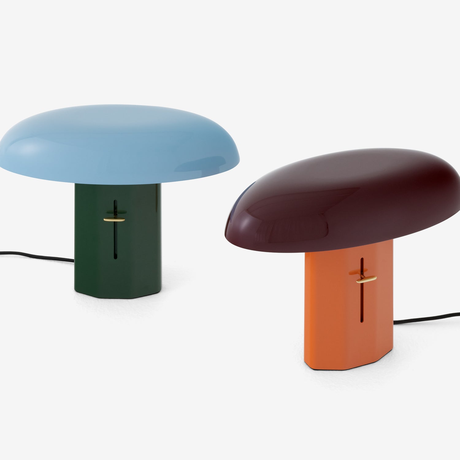 Each piece is thoughtfully crafted with an aluminium base and shade, a black textile cord, and a polished brass dimmer with a clear lacquer finish, enabling users to adjust the light intensity according to their mood.