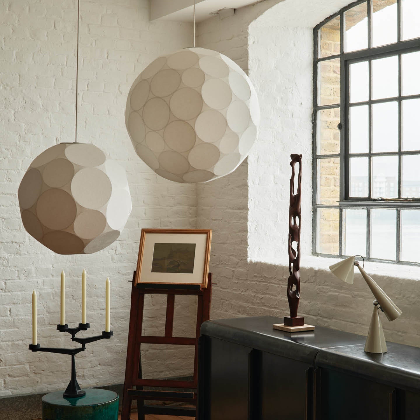 Showcasing a more neutral side of Tom Dixon, the Soft 45cm Pendant produces a warm, diffused and flattering glow. These large-scale pendants are inspired by the near-spherical surface of a partially formed celestial body.