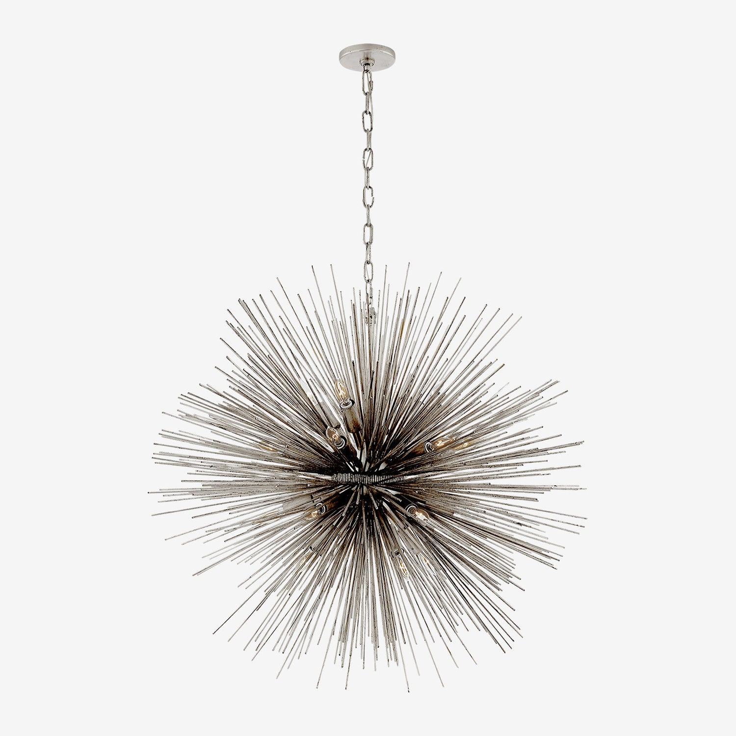 We absolutely adore the collection of Kelly Wearstler lights, her pieces are contemporary, sculptural and breathtaking. Here we see the Strada Round Pendant looking magnificent - it's big, bold and packs a punch and it's part of a collection that includes different shapes as well as wall sconces, and in four finishes. Shop the Strada Collection now.