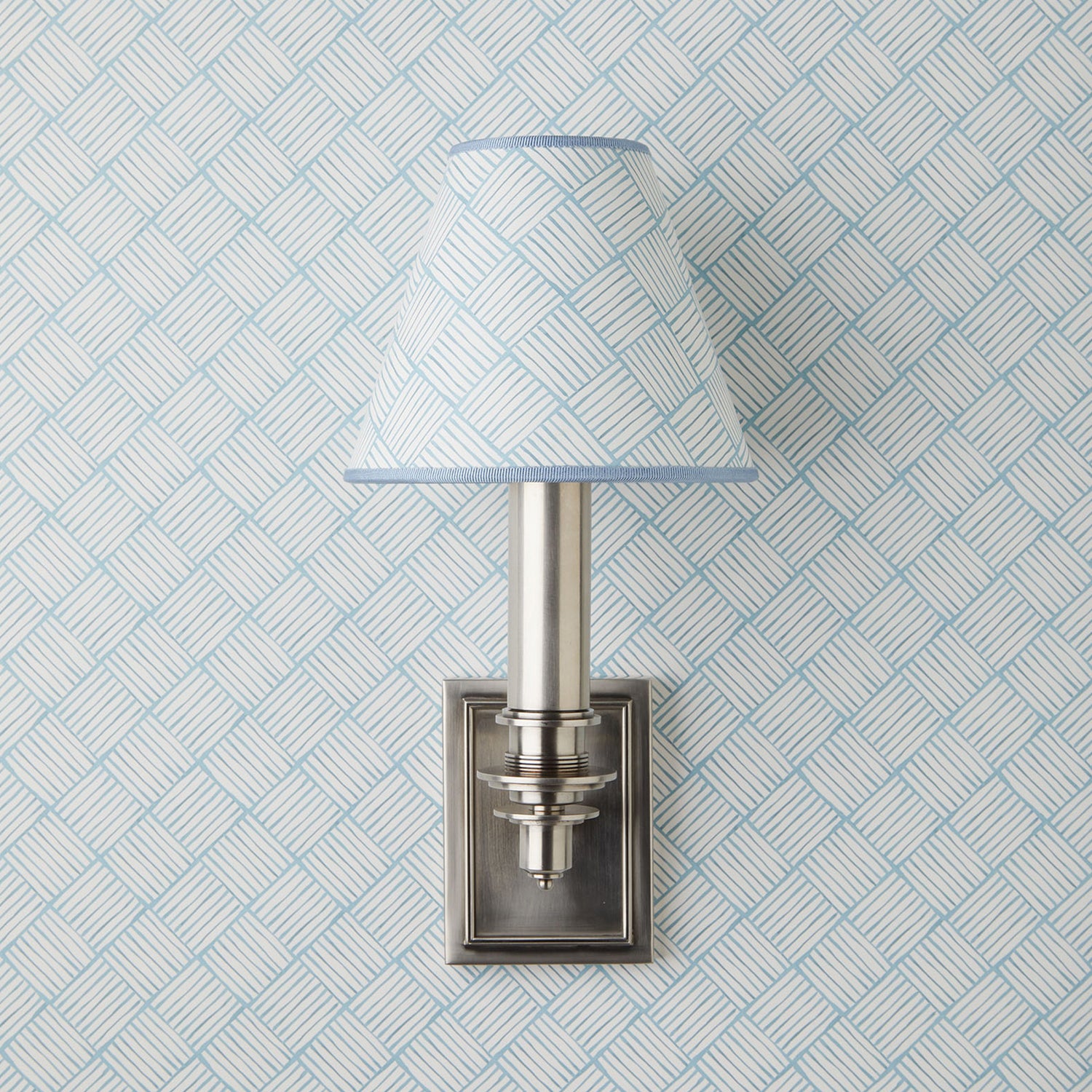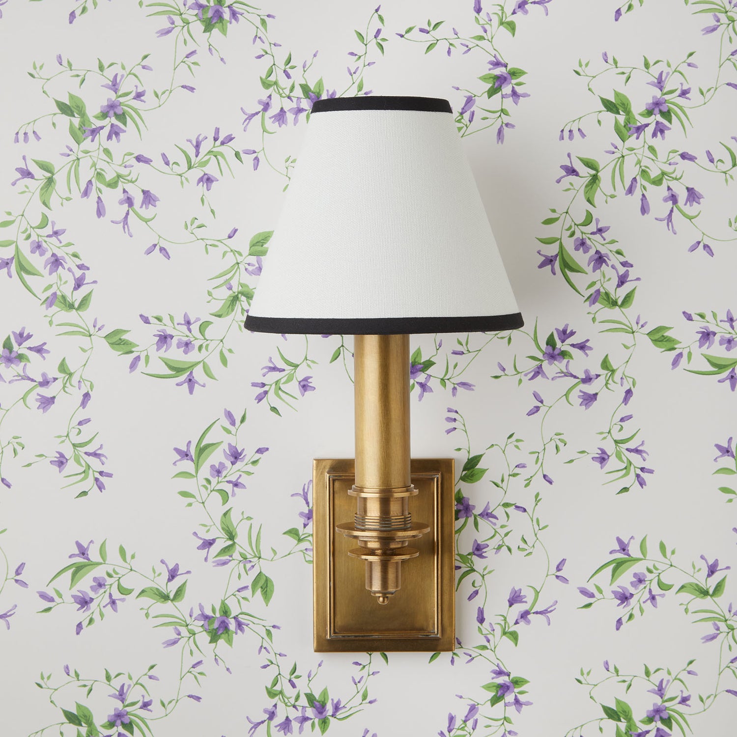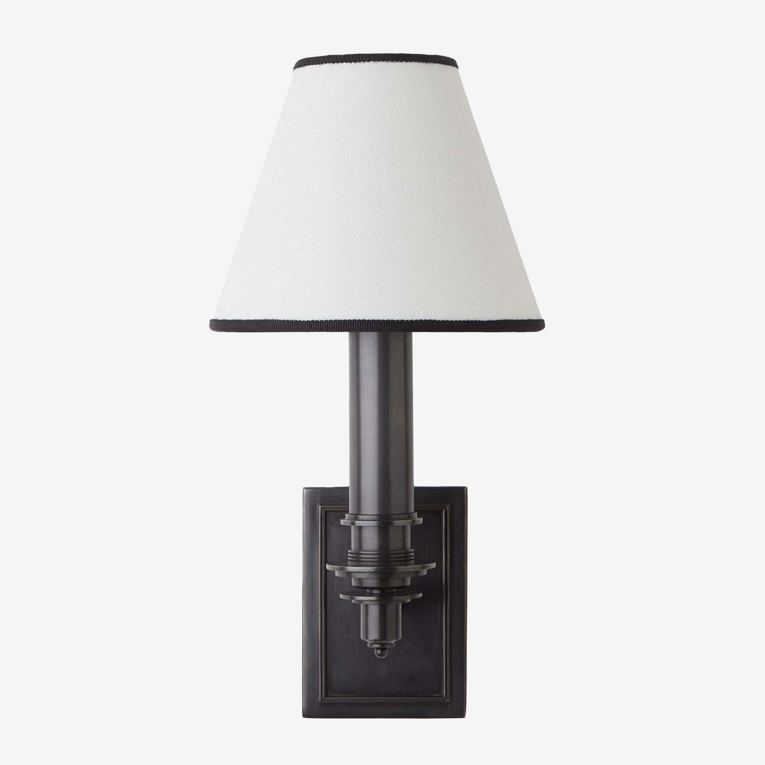 Each sconce features a crisp white linen shade, finished with grosgrain ribbon trim in four signature Diane Bergeron colours. The sconce is available in three finishes - Bronze, Antique Silver, and Antique-Burnished Brass - chosen to complement a wide range of interiors.
