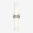 Jones Medium Double Sconce - Polished Nickel with White Glass is backordered and will ship as soon as it is back in stock.