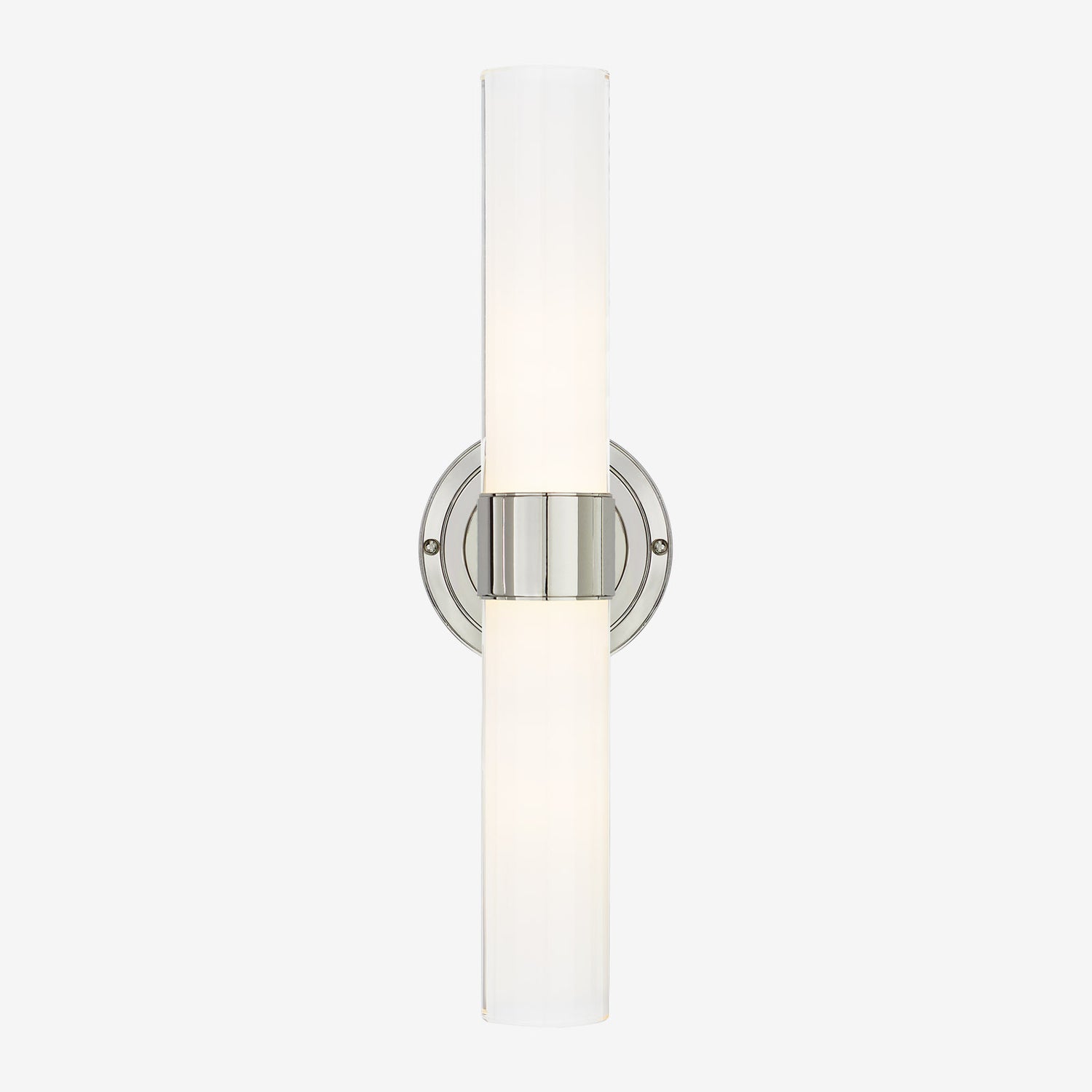 Inspired by the bezel of Ralph Lauren’s iconic sporting timepieces, the Jones Double Sconce features white glass cylinders supported by a beautifully detailed backplate. Equipped with dedicated LED, it can be mounted in either a vertical or horizontal direction.