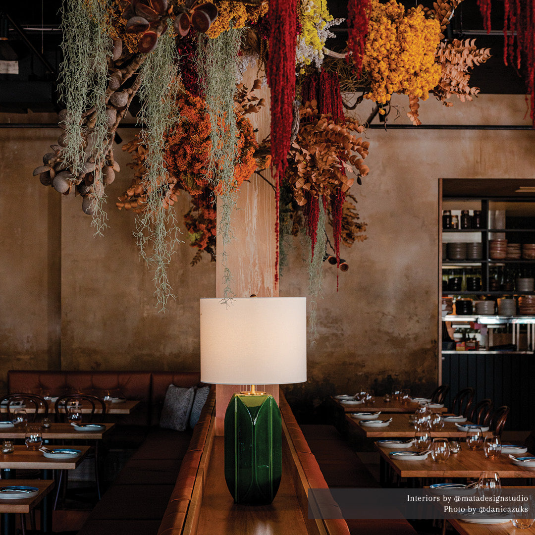 Carmilla Medium Table Lamp - Emerald Crackle with Linen Shade is backordered and will ship as soon as it is back in stock.