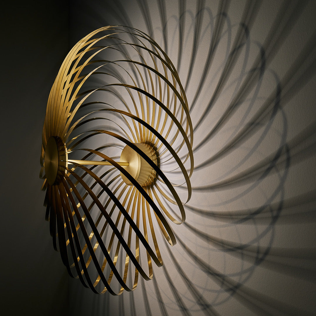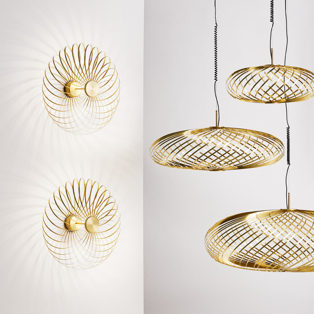 The Spring Surface Wall Light is a series made up of pliant ribbons of stainless steel metal that have been arranged like a whisk around the custom-made dimmable Tom Dixon LED module. The semi-transparent shape it creates can be adjusted to a variety of silhouettes - available in Brass finish.